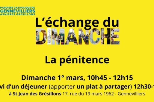 L’échange du dimanche Une proposition toute simple pour nous tous, paroissiens de Gennevilliers et d’Asnières-Grésillons et nos amis :
