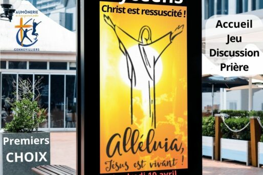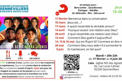 Exceptionnellement à ND des Agnettes le 10 avril Les lycéens se réunissent l’église St Jean des Grésillons de 20h à 22h (sauf pendant les vacances scolaires), 1 vendredi sur 2