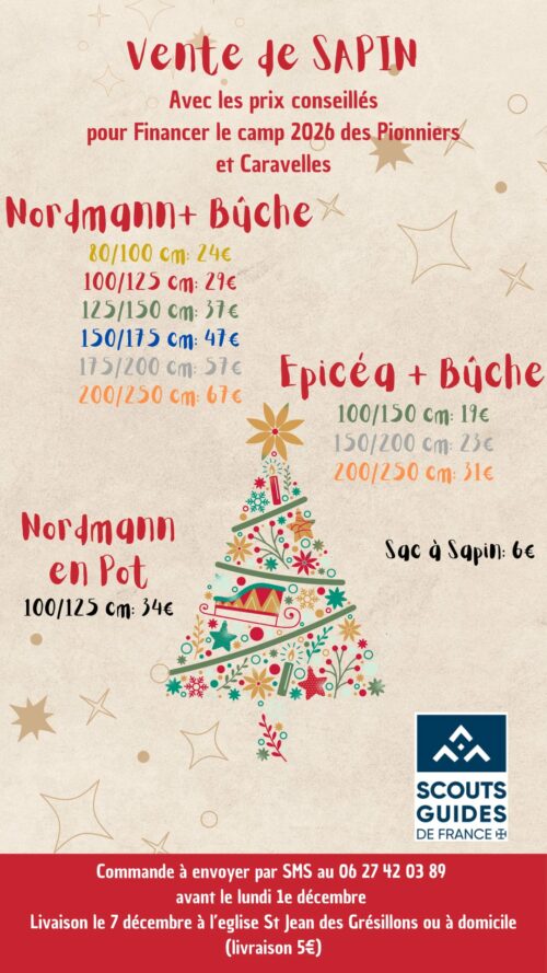 Livraison : 7 décembre à l’église St Jean des Grésillons ou à domicile (5 E à domicile)