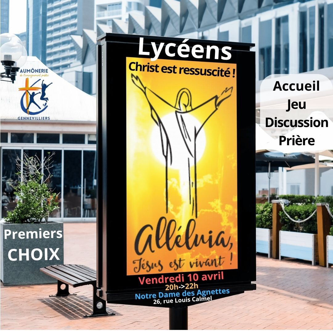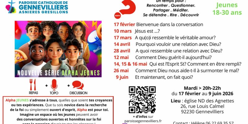 L’Aumônerie des lycéens se retrouve un vendredi sur 2 hors vacances scolaires de 20h à 22h à saint Jean des Grésillons (17, rue du 19 mars 1962) Les jeunes prennent […]Lire la suite