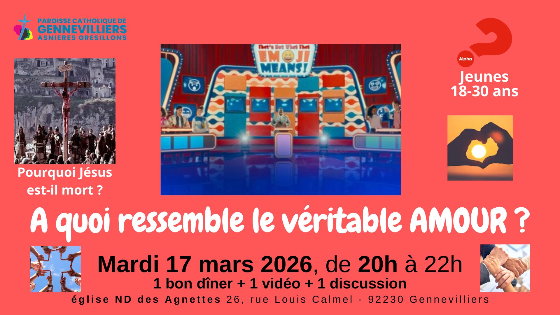Un dîner convivial et amical, où chacun apporte un plat à partager + une vidéo sur une question importante + une discussion si on veut parler + une prière finale […]Lire la suite