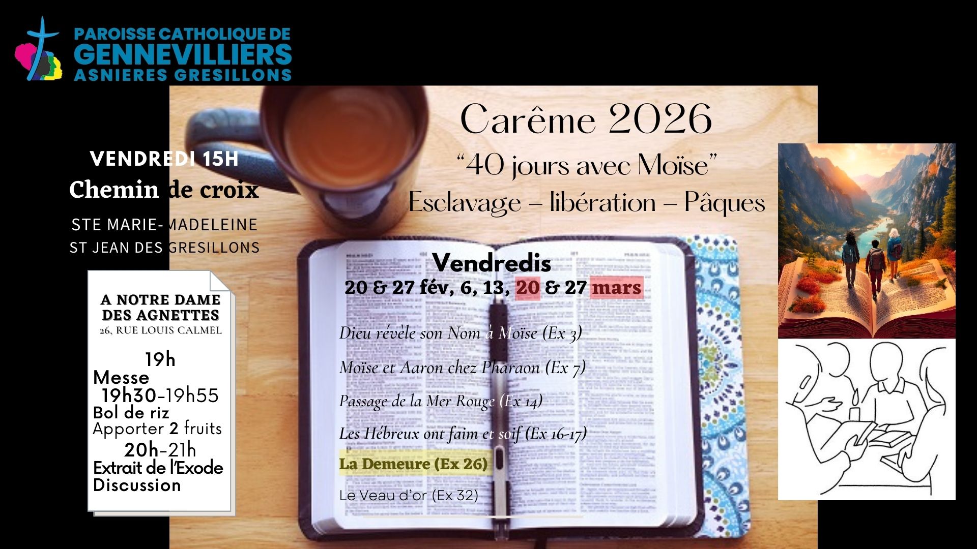 Messes dominicales Samedi à ND des Agnettes : 18h30 Dimanche à St Jean des Grésillons : 9h30 Dimanche à Ste Marie-Madeleine : 11h En semaine Lundi : […]Lire la suite