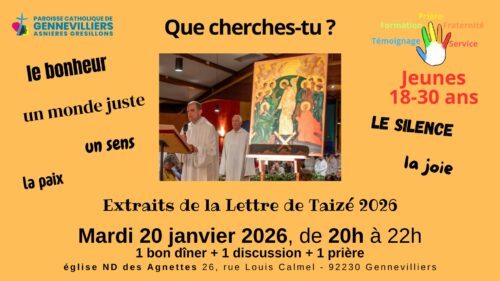 Les rencontres ont lieu le mardi de 20h à 22h à l’église Notre Dame des Agnettes