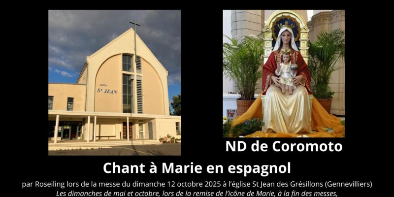 Messes dominicales Samedi à ND des Agnettes : 18h30 Dimanche à St Jean des Grésillons : 9h30 Dimanche à Ste Marie-Madeleine : 11h En semaine Lundi : […]Lire la suite