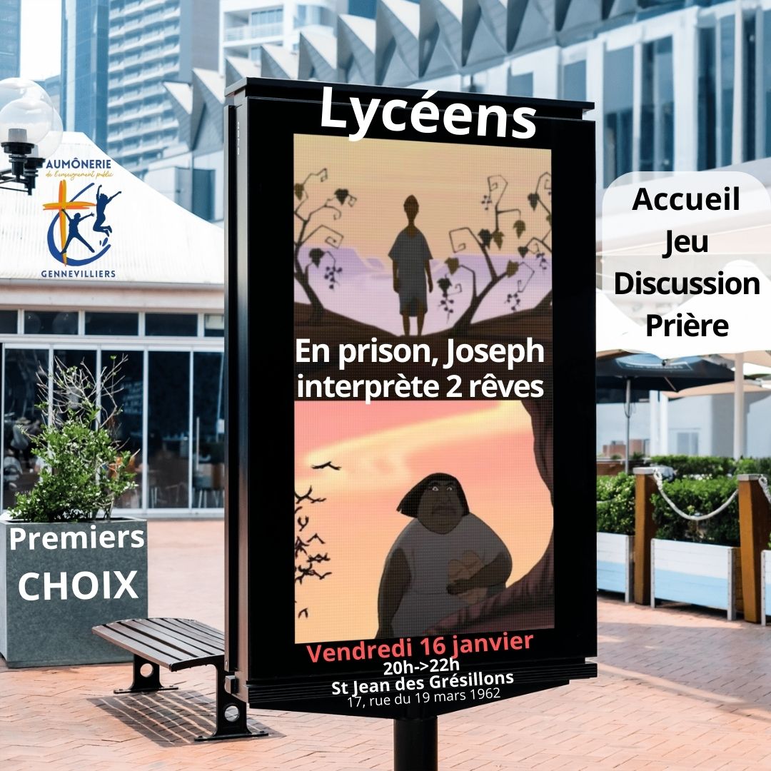 L’Aumônerie des lycéens se retrouve un vendredi sur 2 hors vacances scolaires de 20h à 22h à saint Jean des Grésillons (17, rue du 19 mars 1962) Les jeunes prennent […]Lire la suite