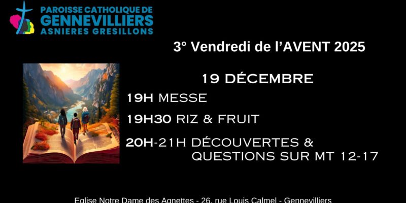 Voici des propositions pour l’Avent 2025. Notons-les dans notre agenda pour y participer ! C’est pour tous, y compris certains temps auxquels nous pouvons inviter largement ! 3 Vendredis de […]Lire la suite